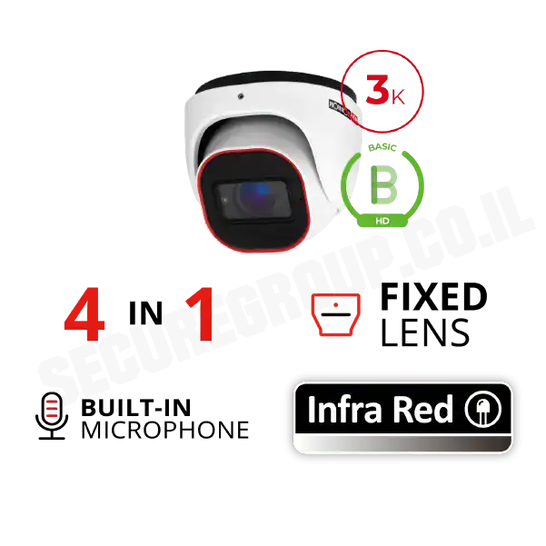 מצלמת כיפה להתקנה פנימית וחיצונית המצוידת בעדשה רחבה 2.8 מ"מ ברזולוציה של 3K המיועדת למרחקים קצרים (עד 20M). עם טכנולוגיית 4in1 הניתנת לבחירה באמצעות מתג DIP.