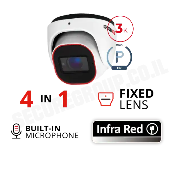 מצלמת כיפה להתקנה פנימית וחיצונית המצוידת בעדשה רחבה 2.8 מ"מ ברזולוציה של 3K המיועדת למרחקים קצרים (עד 20M). עם טכנולוגיית 4in1 הניתנת לבחירה באמצעות מתג DIP.