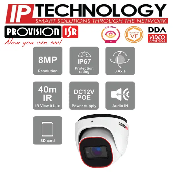 - מצלמת כיפה צריח 8MP מבית PROVISION-ISR