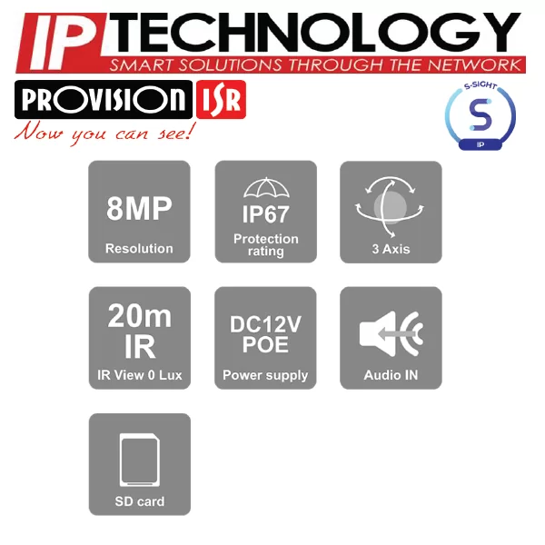תגיות PROVISION-ISR, מצלמות IP, מצלמות אבטחה, מצלמות רשת, מצלמת כיפה, מצלמת כיפה 8MP