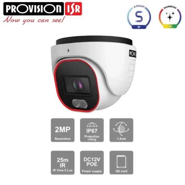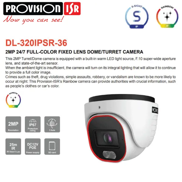 תגיות PROVISION-ISR, Rainbow, מצלמות 2MP, מצלמות FullColor, מצלמות IP, מצלמות IP 2MP, מצלמות אבטחה, מצלמת IP 2MP, מצלמת כיפה, ראיית לילה בצבע