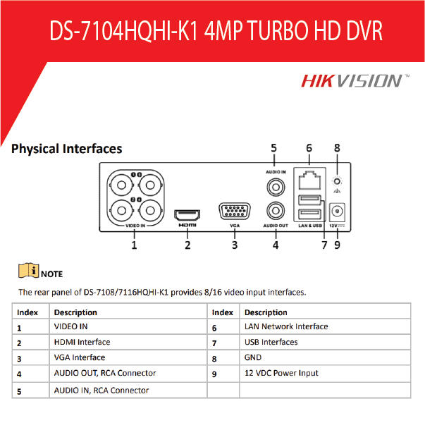 - HDMI output at up to 4K (3840 × 2160) resolution for DS-7116HQHI-K1