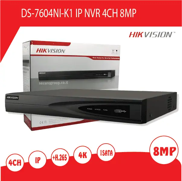 מערכת הקלטה 4 ערוצים HIKVISION NVR דגם DS-7604NI-K1, פורמט דחיסה +H.265