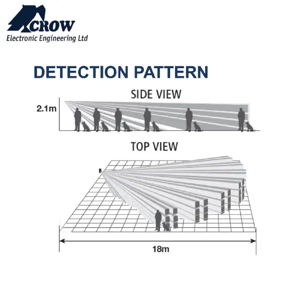 גלאי נפח קווי פנימי בעל עדשה אופטית מיוחדת עם QUAD (4 אלמנטים) עם חיישן PIR ואלקטרוניקה מבוססת ASIC המותאמת למניעת אזעקות שווא הנגרמת על ידי בעלי חיים וחיות מחמד.