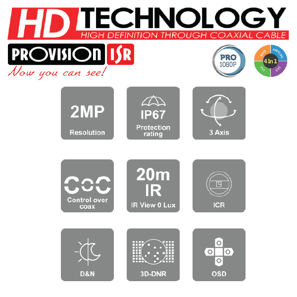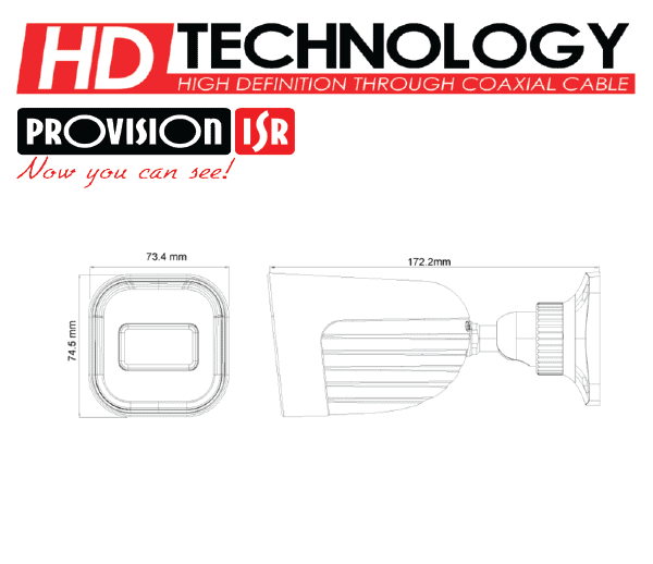 תגיות PROVISION-ISR, מצלמה ל-20 מטר, מצלמות אבטחה, מצלמת צינור, מצלמת צינור 2MP