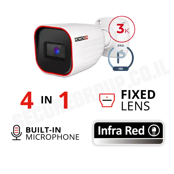 מצלמת צינור אינפרא I4-33K0AP-28 5Mp 3K מבית PROVISION-ISR, עדשה קבועה 2.8 מ"מ, רזולוציה 3K, ראיית לילה למרחק 40M, מוגנת מים IP66 מקרפון מובנה