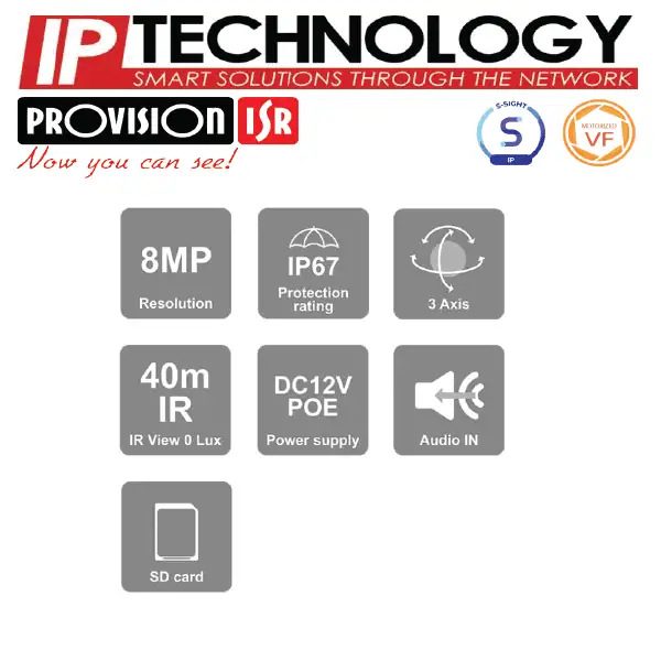 מצלמת צינור IP אינפרא וארי-פוקל PROVISION-ISR I4-380IPS-MVF 8MP