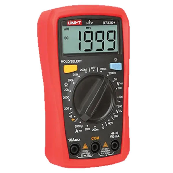 הרב-מודד הדיגיטלי UT33D+ מבית UNI-T מגדיר מחדש את רמת הביצועים עבור מכשירי מדידה בסיסיים בעיצוב תעשייתי חדשני. המכשיר קומפקטי במיוחד, עמיד לנפילה מגובה של 2 מטרים וכולל מסך LCD ברור עם תאורה אחורית לשיפור חוויית המשתמש. הוא מצויד בטכנולוגיית NCV לזיהוי מתח ללא מגע, מה שהופך אותו לכלי עבודה בטוח ומדויק עבור חשמלאים וטכנאים