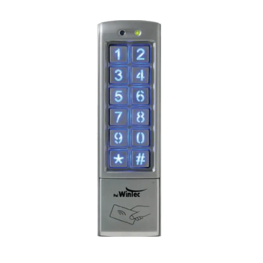 קודן חיצוני מתכתי מוארך, אנטי ונדלי, מוגן מים IP-65 להתקנה על הטיח דגם PK-12 פאל ווינטק, 2 ממסרים להפעלות שונות, עד 1000 קודי משתמש/תגי קרבה, אפשרות לשינוי זמן ממסר לפי הצורך