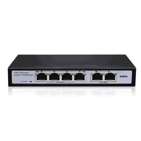 סוויץ' PoE 4+2 מתג 4 פורטים 10/100MMbps 1G עם 2 ערוצי UpLink 100Mbps Port, ספק כוח חיצוני, העברת נתונים עד 100M, מגן ברקים מובנה,