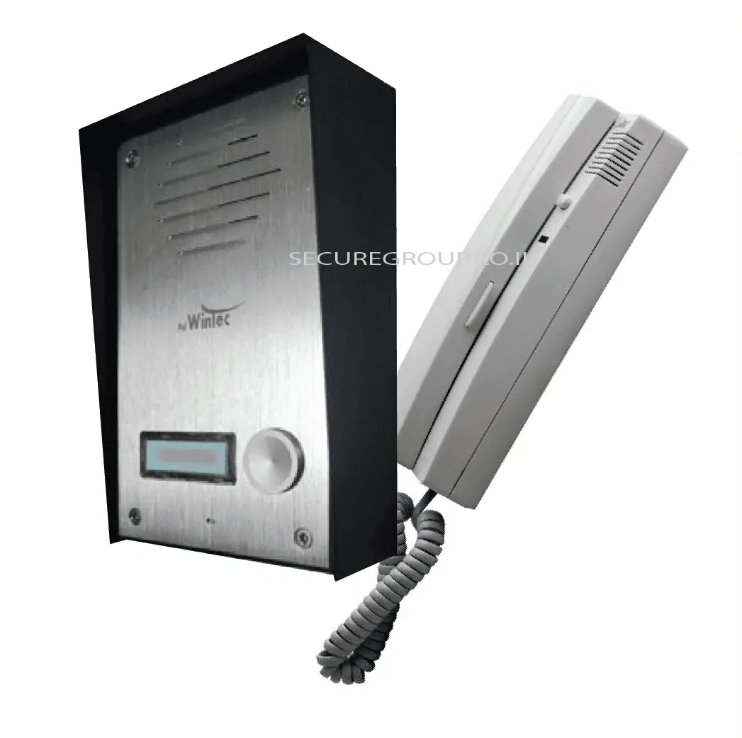 אינטרקום אודיו פאל ווינטק PTA-201 משולב לחצן אינטרקום חיצוני מתכתי להתקנה על הטיח, משולב גגון מובנה ושפורפרת אינטרקום פנים למענה ופתיחת מנעול דלת, צלצול אלקטרוני ואפשרות וויסות עוצמת צלצול (השתקה)