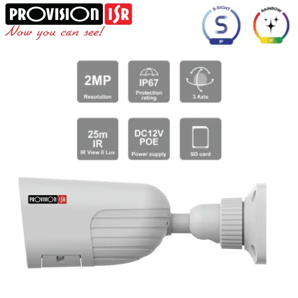תגיות PROVISION-ISR, Rainbow, מצלמות 2MP, מצלמות FullColor, מצלמות IP, מצלמות IP 2MP, מצלמות אבטחה, מצלמות רשת, מצלמת IP 2MP, מצלמת כיפה, ראיית לילה בצבע