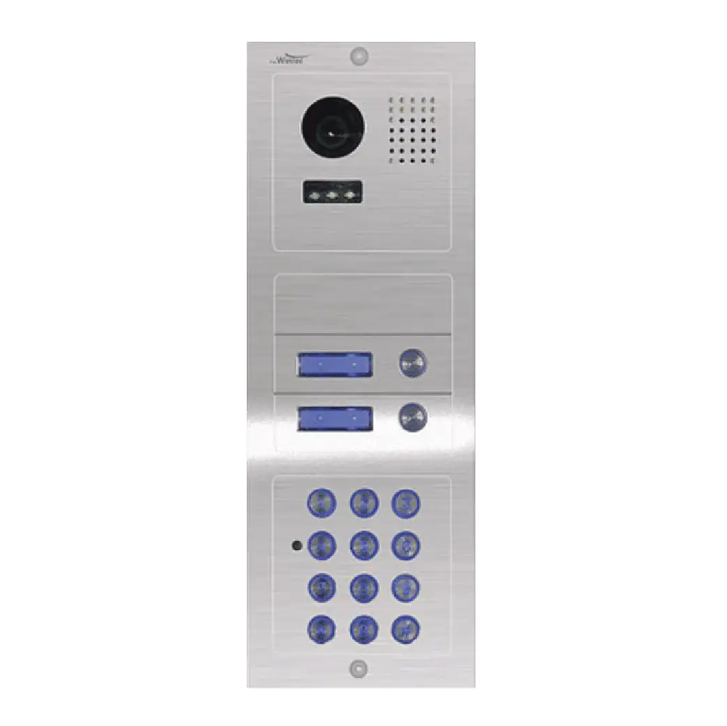 אינטרקום טלוויזיה 2 לחצנים פאל ווינטק VEGA 3024 KTV/C חיצוני משולב מודול 2 לחצנים מוארים ומודול מצלמה צבעונית לראיית לילה עם זווית רחבה ומודול קודן מואר לפתיחת מנעול דלת באמצעות קוד משתמש. עשוי מנירוסטה לא מחלידה, מוגן מים ומותאם להתקנה תחת הטיח או על הטיח באמצעות קופסת התאמה