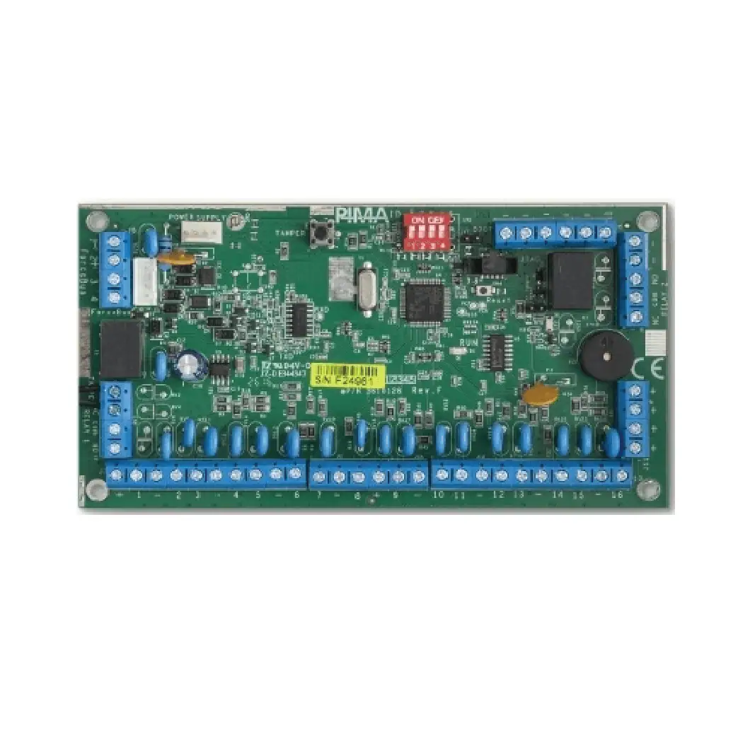 מסכיםמרחיב חיצוני 16 אזורים למערכת פימא דגם Force המאפשר הוספה של עוד 16 אזורים למערכת, 16כניסות אזורים, ממסר אחד